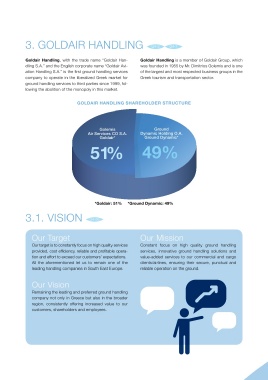 dling S.A.” and the English corporate name “Goldair Avi- was founded in 1955 by Mr. Dimitrios Golemis and is one our employees to the benefit of our customers and as- In Goldair Handling, our values are embedded in every-
