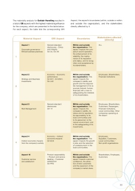 Stage 3: Validation The materiality analysis for Goldair Handling resulted in Aspect, the aspect’s boundaries (within, outside or within
