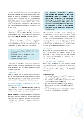 services provided by the company and fully meets the • Athens International Airport (ISO 9001 / ISO 14001 / During 2016 there were no incidents of non-compliance