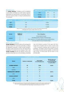 its employees who took part in or contributed to responsible development and to employee oriented Goldair Handling records and regularly monitors any total number of working days lost are shown in the