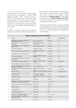 In addition, the company supports various charitable of the value of social contribution and the importance of does not end with the publication of this Report, but process, the Corporate Responsibility and Sustainable