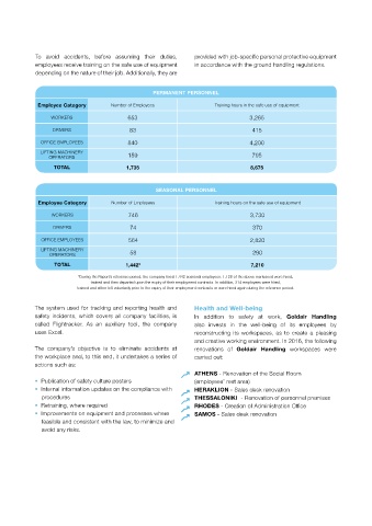 safety incidents, which covers all company facilities, is In addition to safety at work, Goldair Handling employees, the Company will develop a Complaints