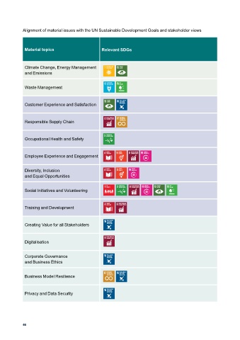 Alignment of material issues with the UN Sustainable Development Goals and stakeholder views Contribution to the UN Sustainable Development Goals