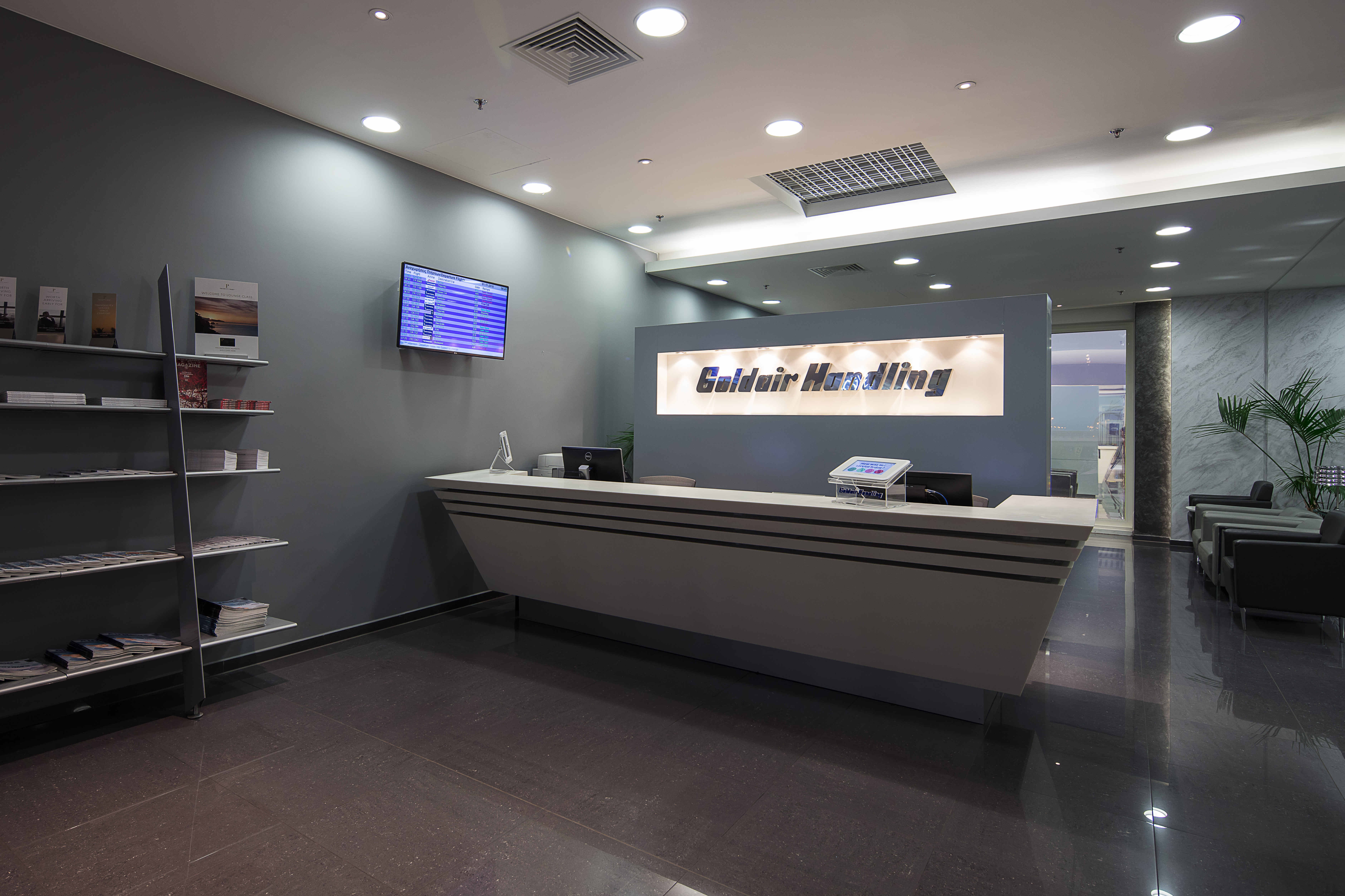 Goldair Handling Lounge provides passengers with: welcome reception desk, flight departure information, business area with free WiFi access, satellite TV, international and local magazines and a wide range of hot and cold dishes, beverages and drinks. All in a relaxed atmosphere with a panoramic view towards Spata countryside.