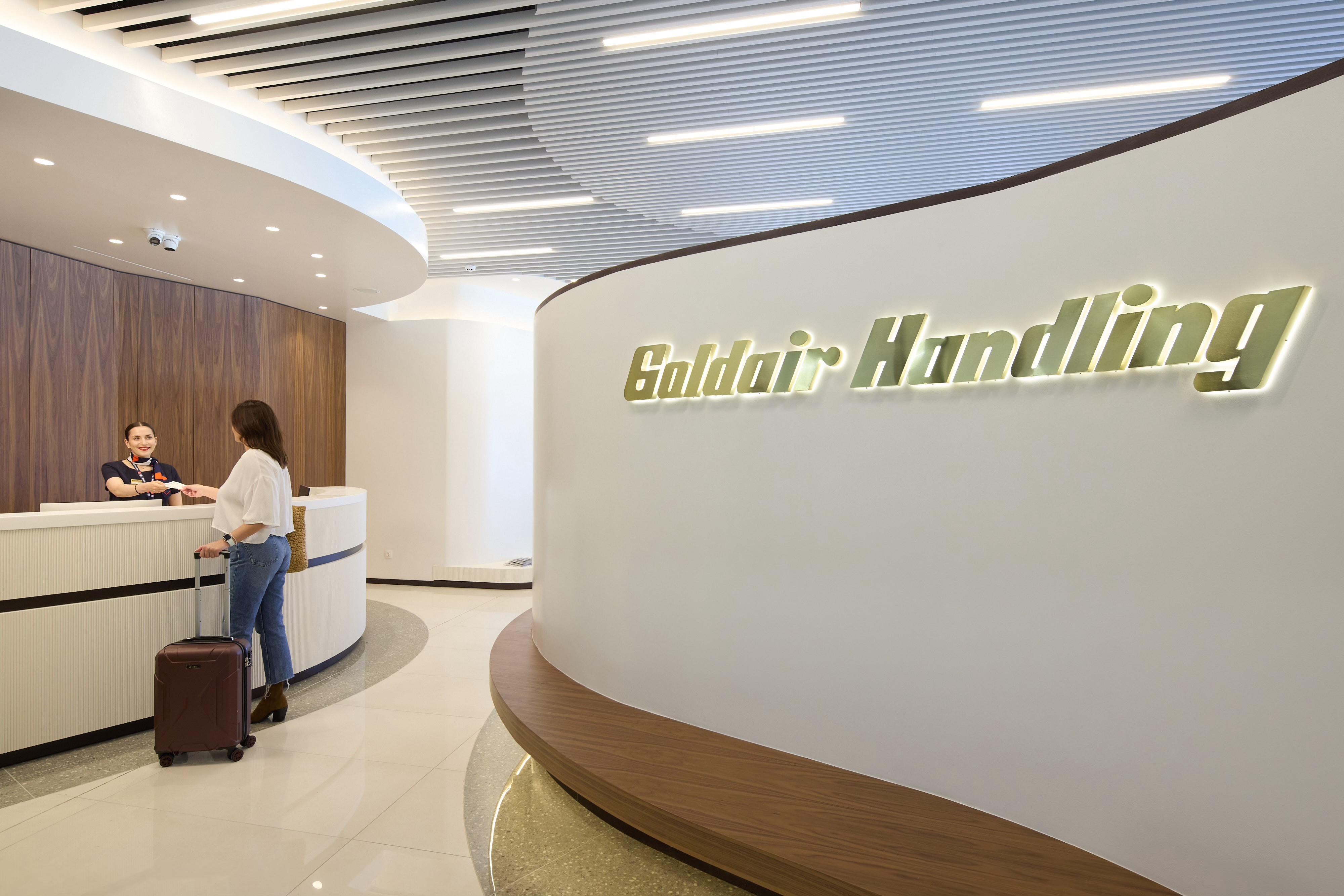 The Goldair Handling Lounge, situated at Rhodes International Airport, located on the 2nd floor of the terminal, provides a luxurious and refreshing experience before your flight departure, all while enjoying a serene environment with panoramic sea view. Designed to elevate your airport visit, this lounge offers contemporary travelers a sophisticated retreat with high-quality services that enhance every moment. Guests are welcomed into a stylish, minimal and elegantly appointed space, where they can enjoy a selection of cold dishes, delectable snacks, and exquisite desserts, all inspired by the rich flavors of Greek gastronomy. The beverage menu features a broad array of hot and cold drinks, premium spirits, and wines from esteemed Greek producers. Additional amenities include welcome reception desk, flight departure information, business area with free WiFi and facilities designed to accommodate guests with disabilities, ensuring a relaxing and enjoyable experience.